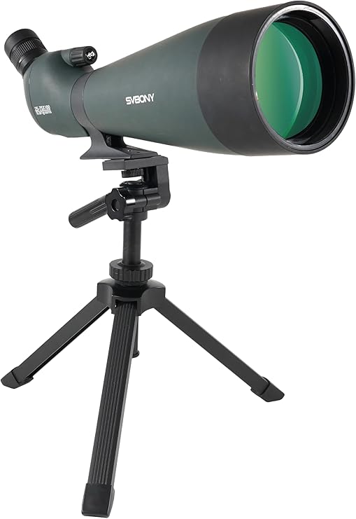 The SVBONY SV28 100mm Angled Spotting Scope is a reliable tool for those who demand clarity and detail at extended ranges. Its optical strength and ergonomic features make it a versatile companion for birdwatching, target shooting, or nature observation. While the tripod may require careful handling, the scope’s overall value is compelling for users needing both performance and durability.