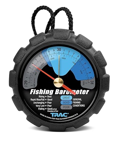 Enhance your fishing preparations with the Camco TRAC Outdoors Fishing Barometer. Its intuitive features make tracking weather changes easier, helping you plan your fishing trips more effectively. This device brings precision and convenience right to your pocket or cabin wall.