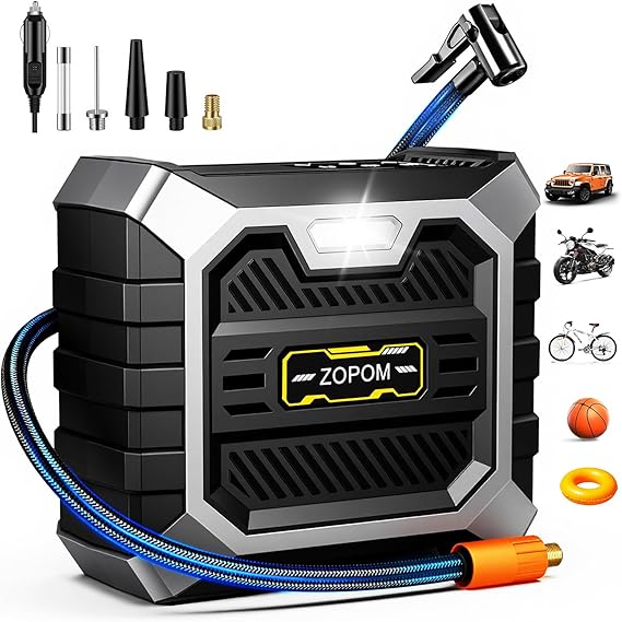 Keep your vehicle tires properly inflated with the ZOPOM Tire Inflator Portable Air Compressor. Its reliable performance and smart features make it an essential tool for routine maintenance and emergencies alike.