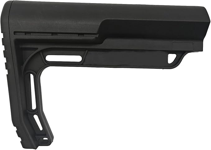 The Lightweight Fixed Stock excels by providing a slim profile that doesn’t compromise on sturdiness. Its compact size supports swift movements without restricting shoulder placement or aim. Thanks to the fixed design, it maintains consistent rigidity, offering a stable shooting experience under various conditions.