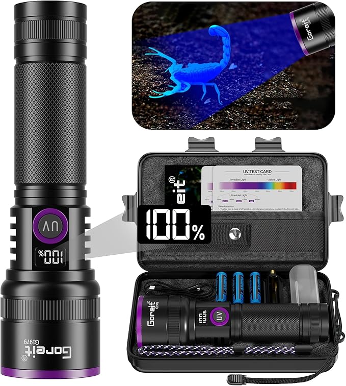 365nm Black Light Flashlight, UV Flashlight Rechargeable with LCD Display,