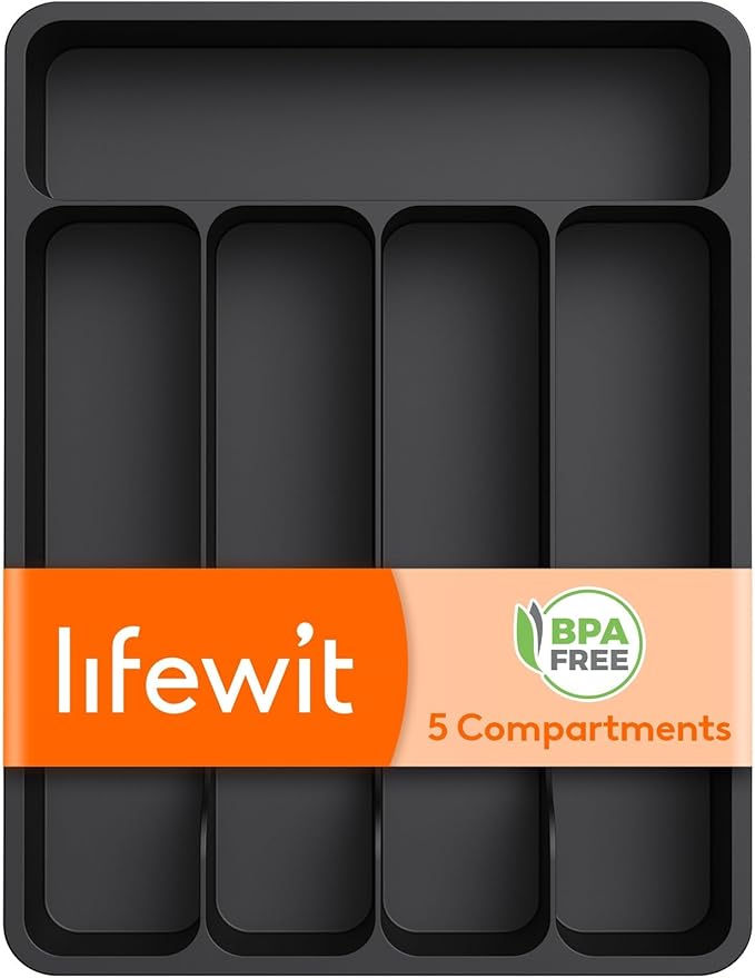 The Lifewit flatware tray adjusts from 5 to