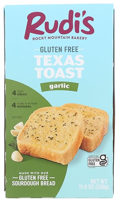Specification Details Brand Rudis Weight 11.8 oz Diet Type Gluten Free Container Type Box Flavor Garlic Item Form Loaf Cuisine American Age Range All Ages Allergen Info Milk