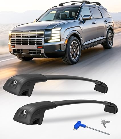 The lockable design enhances security against theft, ensuring your items stay safe during stops. With a generous load capacity of up to 300 pounds, they accommodate a wide array of gear such as bikes, kayaks, roof boxes, or sporting equipment. Installation is straightforward, requiring just a screwdriver, without the need for drilling, and the design ensures a perfect fit for Palisade models from 2019 to