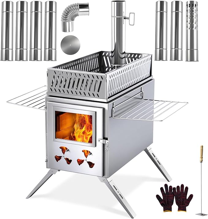 Experience versatile heating with the Upgraded Wood Burning Sauna Hot Tent Stove, your ideal outdoor companion. Designed for both warmth and cooking, it transforms your camping or outdoor setup into a cozy retreat, offering comfort and convenience in one compact device.