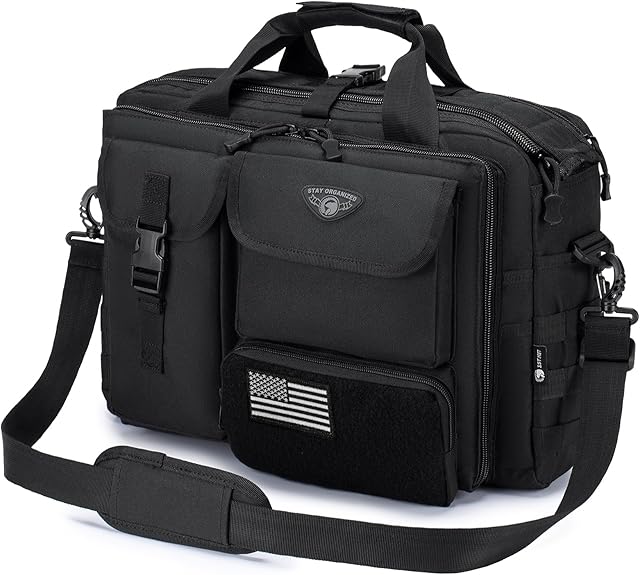 Its adjustable shoulder strap allows comfortable carrying throughout the day. The black color and briefcase style provide a timeless appearance that works with any outfit. This tactical briefcase is an excellent option for men seeking a balance of function, durability, and style.