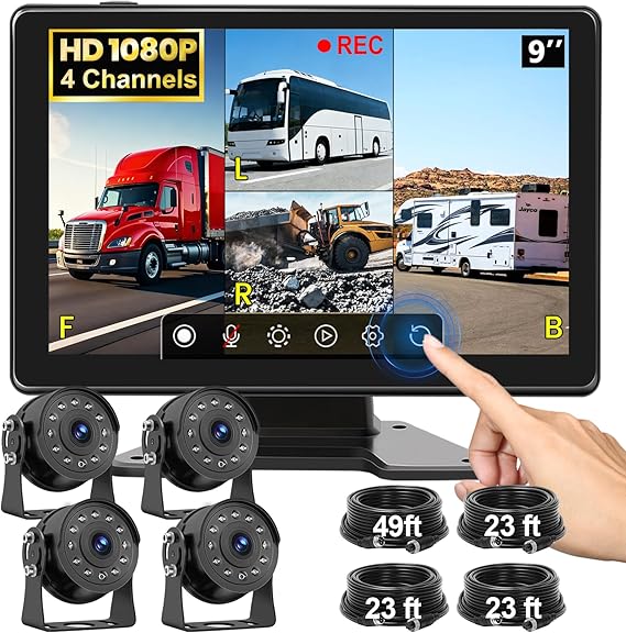 1-inch IPS touchscreen that displays multiple camera feeds simultaneously, ensuring clear, distortion-free images from any angle. The system supports up to four channels, making it ideal for monitoring different sides of your vehicle. Its responsive interface allows for screen rotation and adjustable split-screen modes, complementing various vehicle types such as RVs, trucks, or buses.